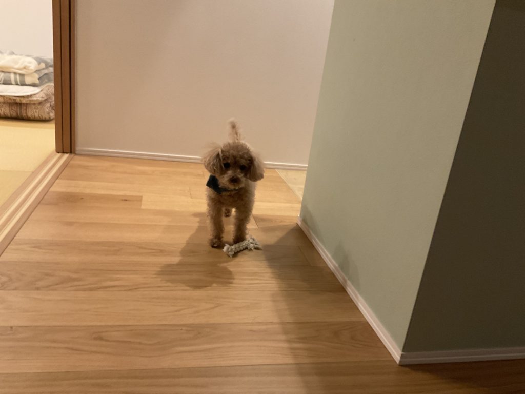 ロイは白いもじゃもじゃのおもちゃが好きです😀